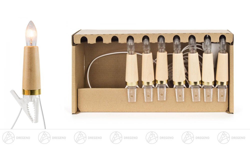 elektr. Beleuchtung mit 7 Riffelkerzen á 34V / 3W (inkl.) und Netzspannung 230V / 21W - für Innen
