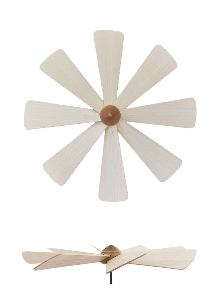 Flügelrad mit 8 verleimten Flügeln aus 2 mm Echtholz (feinem Ahorn)
