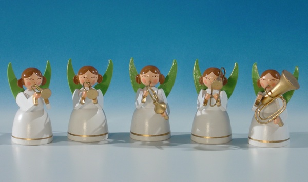 Satz aus 4 musizierenden Engeln mit Blasinstrumenten