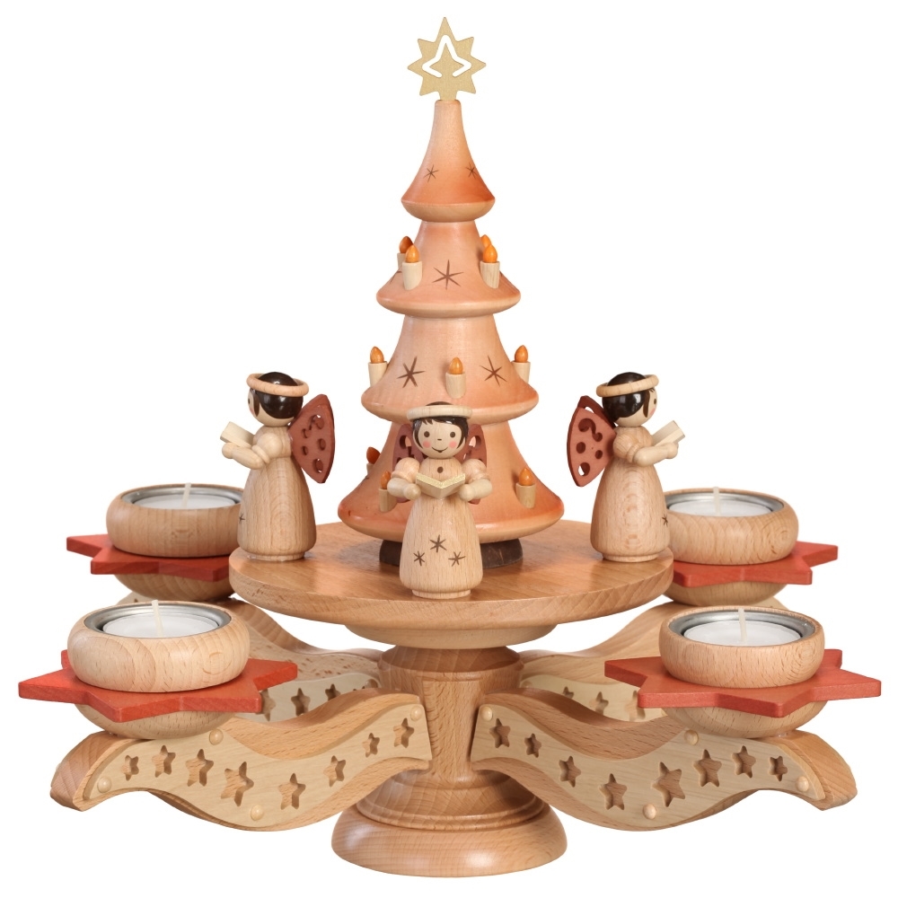 Leuchter mit 4 zusätzlich verzierten Armen - 4 singende Engel am geschmückten Weihnachtsbaum