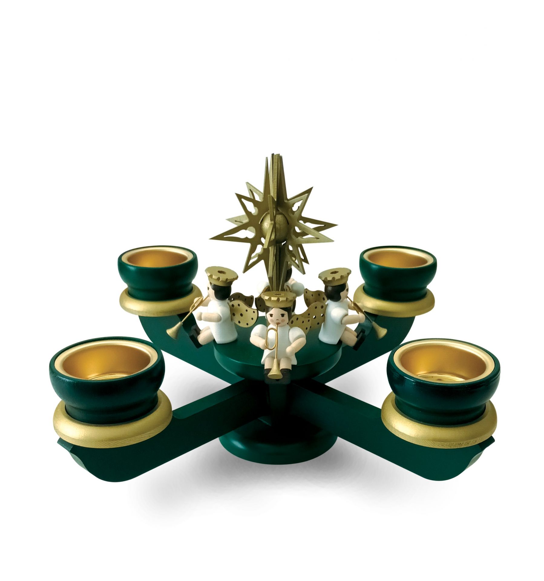 Adventsteelichtleuchter mit 4 Engelmusikanten grün (ZEI-2177)