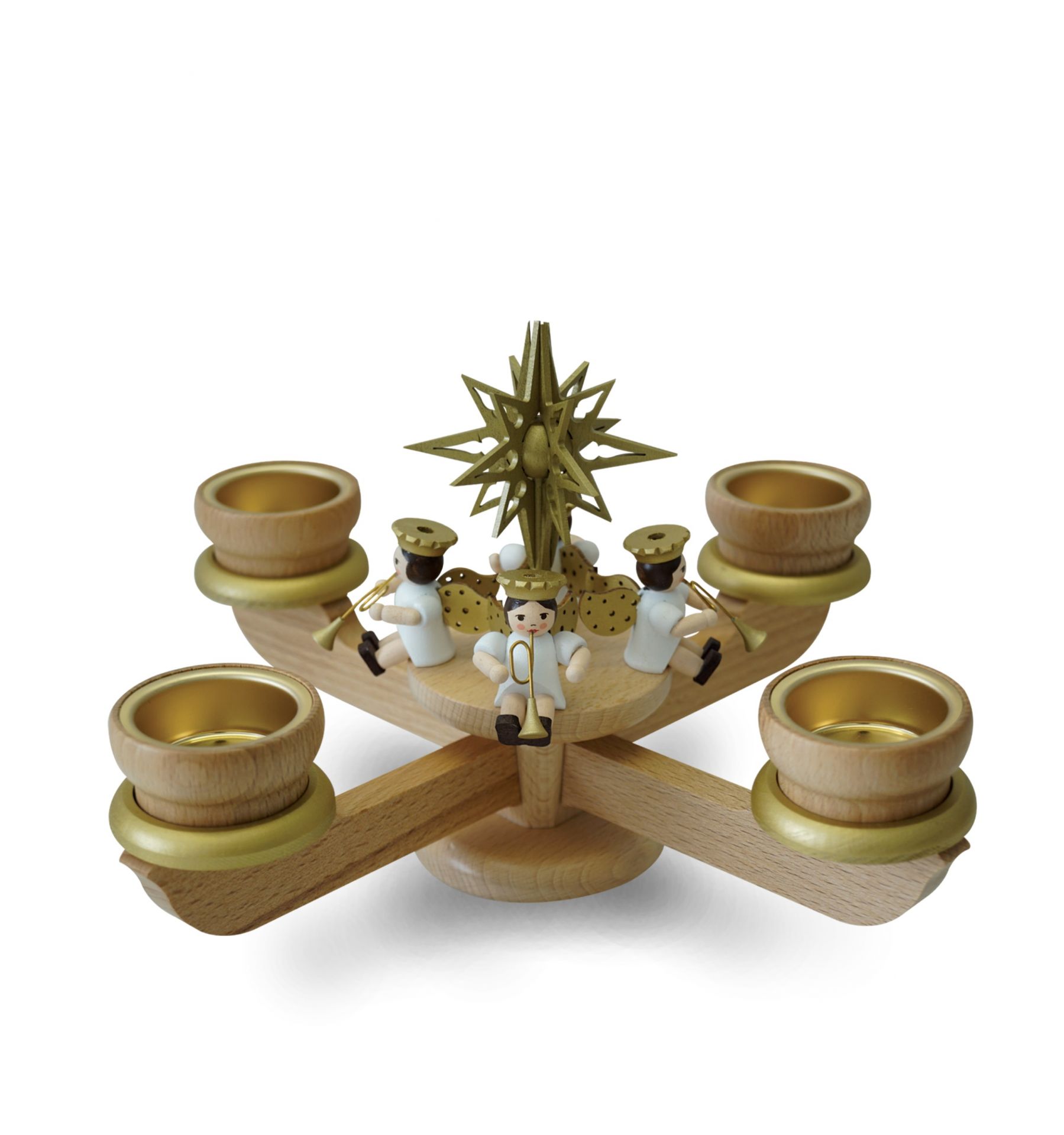 Adventsteelichtleuchter mit 4 Engelmusikanten natur (ZEI-2175)