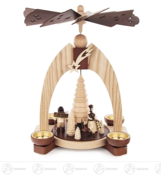 Die beweglichen sich drehenden Weihnachtspyramiden aus dem Erzgebirge strahlen durch die Kerzenbeleuchtung und das sich langsam drehende Flügelrad Wärme und Ruhe aus. Sie suchen eine Tischpyramide mit traditionellem Motiv (z.B. für spezielle Pyramidenkerzen) oder lieber eine schlichte und moderne Teelichtpyramide ? Wir bieten Ihnen in dieser Rubrik eine breite Auswahl der verschiedensten Variationen.