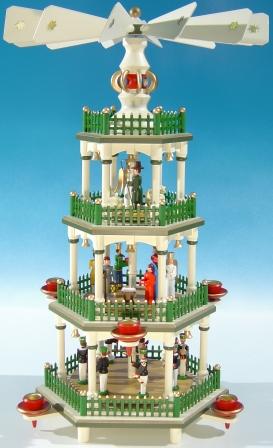 Soldaten auf der dritten Etage und musizierende Engel auf vierter Etage - Pyramide mit steckbaren Flügeln und in historischen Farben