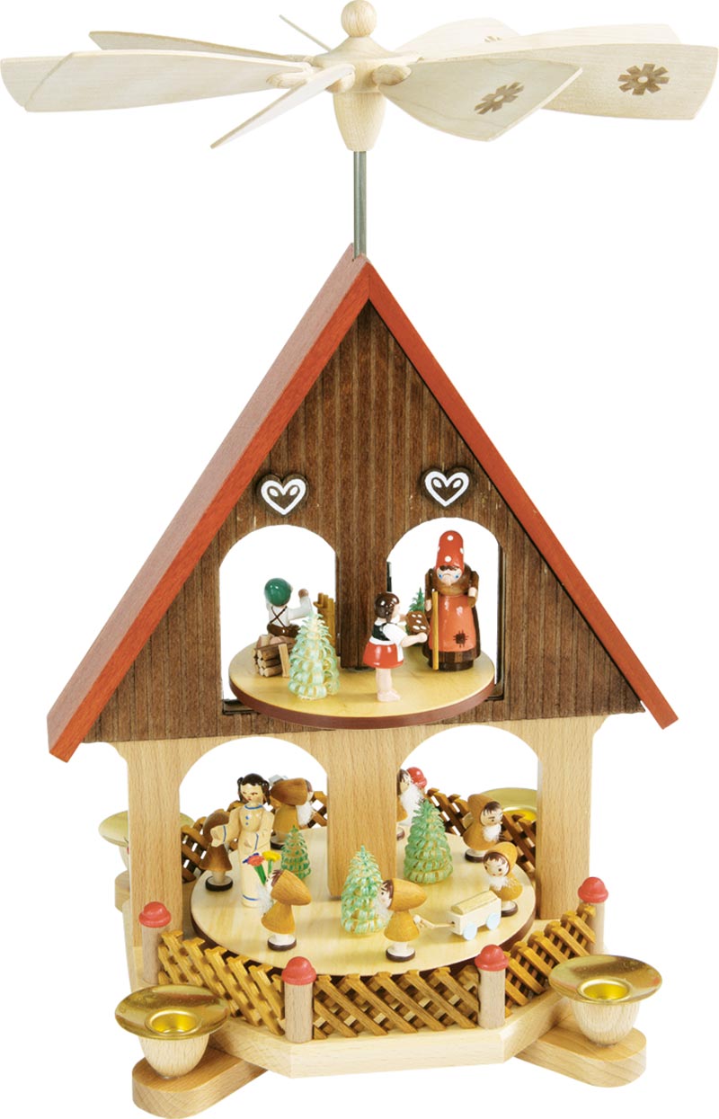 Pyramidenhaus mit Torbögen, Schneewittchen und den 7 Zwergen auf der ersten Etage