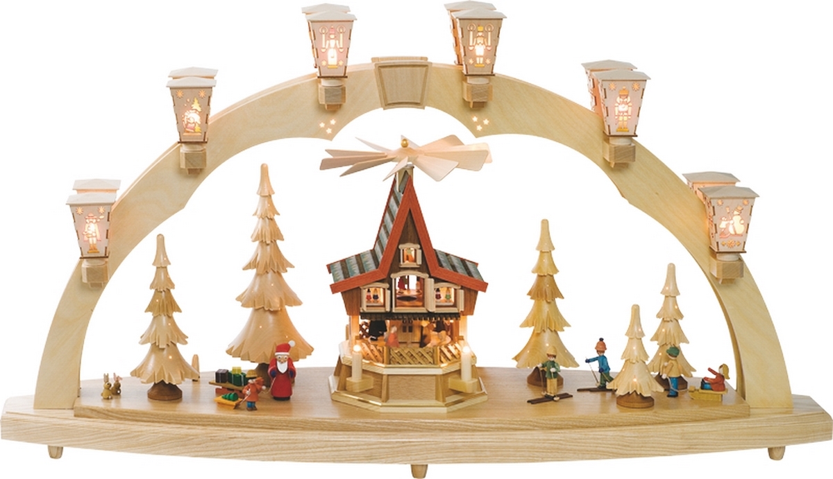 elektrische Bogenbeleuchtung bestückt mit original erzgebirgischen Laternen