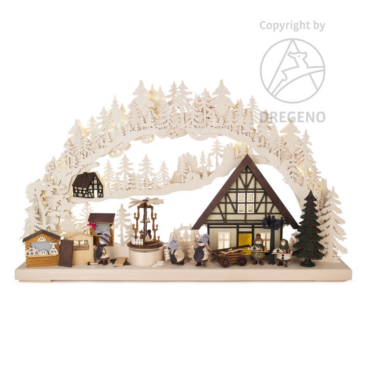 Bogen & Haus indirekt elektrisch mit LED´s beleuchtet - Pyramide elektrisch separat angetrieben (2. Steckerleitung)