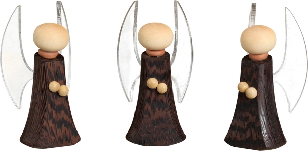 Engel aus Edelhölzern gefertigt und mit durchsichtigen Flügeln (Kunststoff)