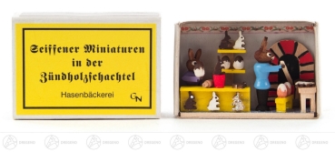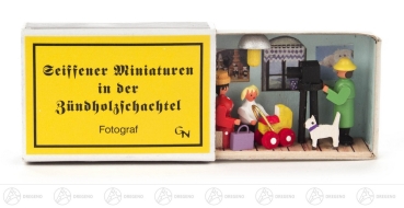 Noch feiner und kleiner als die Miniaturstuben sind die hier gelisteten Miniaturen in der Zündholzschachtel. Eine filigrane Erzgebirgswelt in verschiedenen Szenen auf gerade einmal 4 x 5,5 x 1,5 cm.