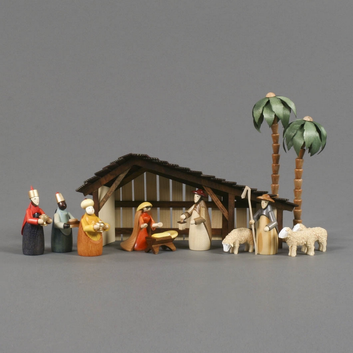Maria mit Josef und Christkind - Heilige Drei Könige und Schäfer mit 3 Schafen (Firgurenhöhe stehend ca. 9 cm)