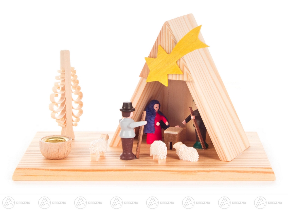Spitzdach mit Maria, Josef & Jesu unterm Sternenschweif