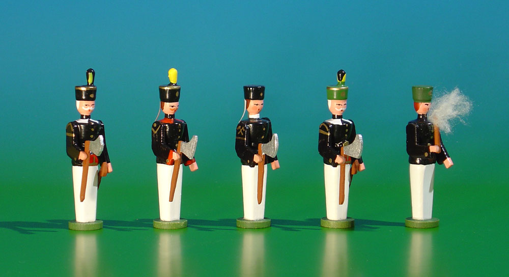 5teiliger Satz mit Bergmännern um 1850 als Miniatur (Figurenhöhe ca. 5 cm)