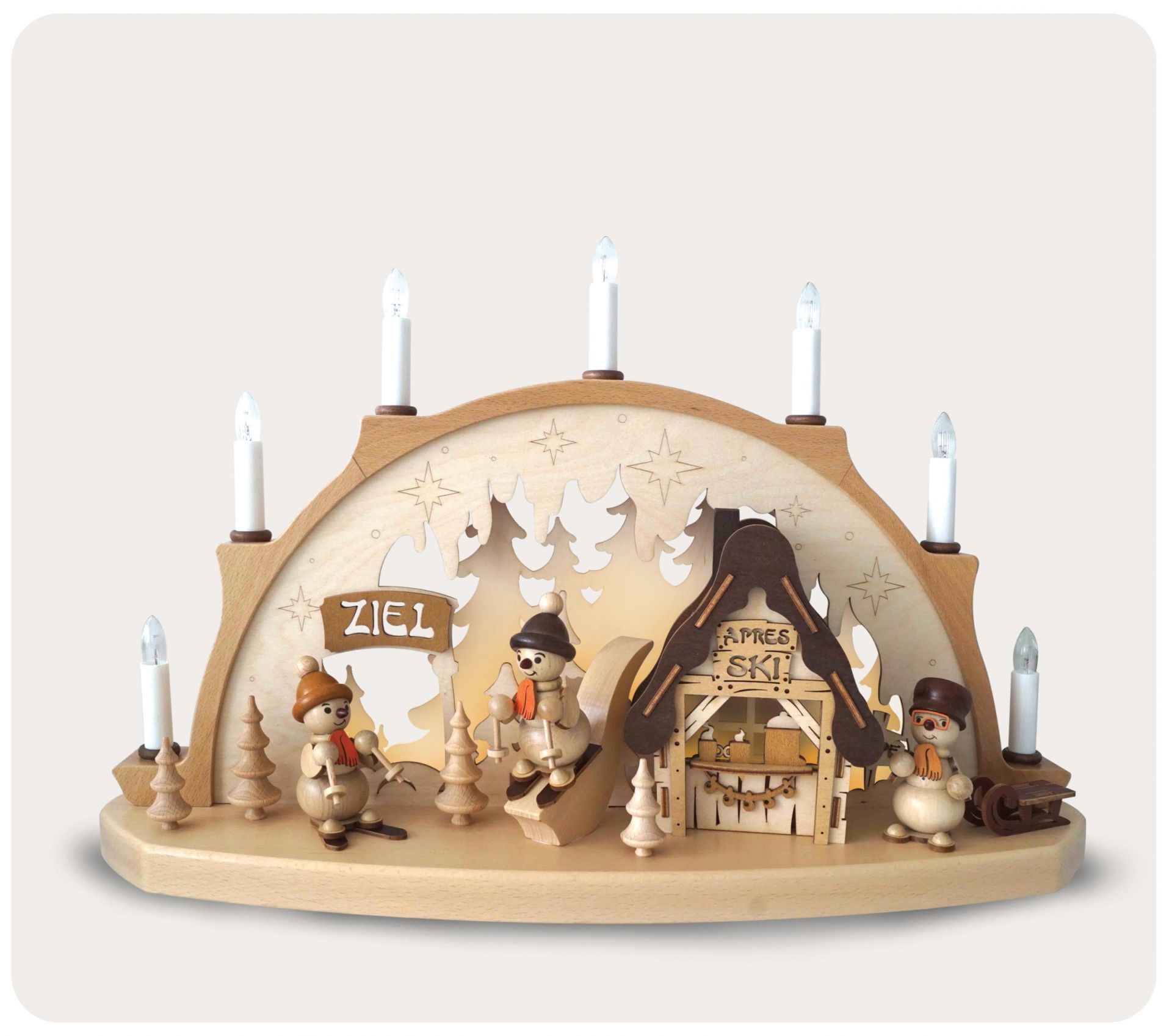 elektrisch beleuchtet - 230V/0,2A/30Watt mit 7 Spitzkerzen á 23V/3W + 3 Spitzkerzen á 23V im Sockel - Kabel mit Flachstecker und Schalter