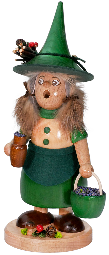Wichtelmütze mit grünem Hut/Rock, Hutschmuck, Schürze, Steine, Kräuter und Korb mit Blaubeeren