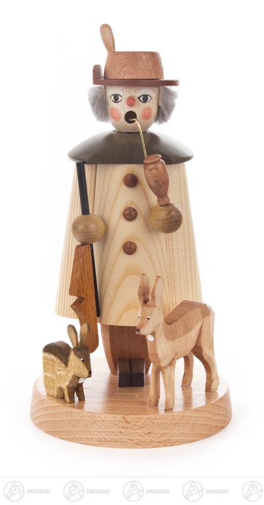 mit Mantel, Hut, Pfeife, Gewehr, Hase und Reh (Reifentiere) auf Sockel