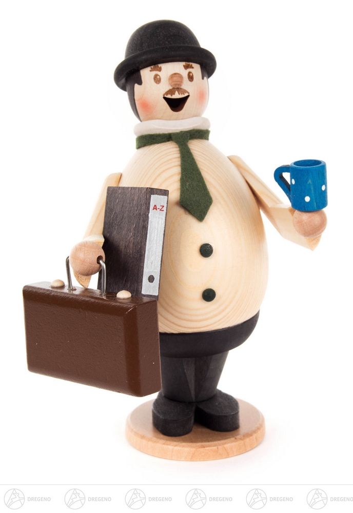mit Mütze, Krawatte, Koffer, Ordner und Kaffeetasse