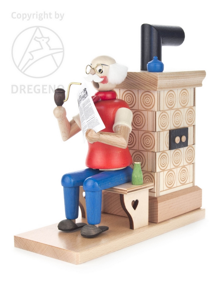 Räuchermann und der Ofen räuchert mit Räucherkerzen bzw. Räucherkegel bis zu Größe L (3,5 cm)