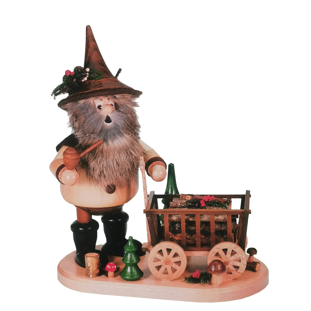 Räuchermann Waldwichtel mit Wagen auf Brett (DWU-900)