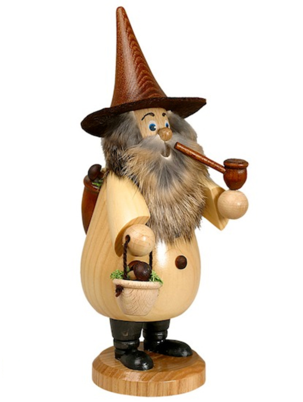 mit Wichtelmütze, Pilzkorb, Rucksack, Pfeife und Bart