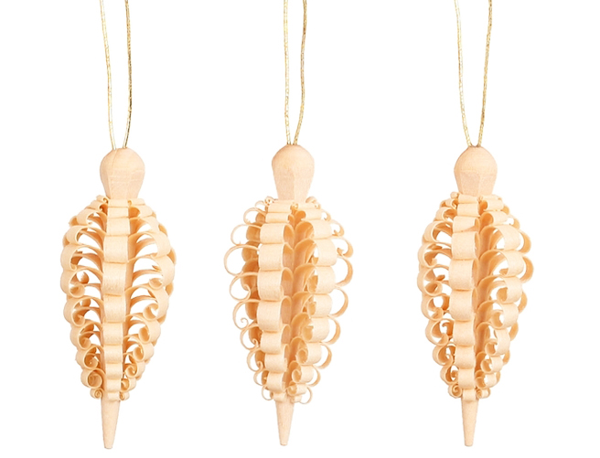 Satz aus 3 handgestochenen Zapfen am goldfarbenen Faden