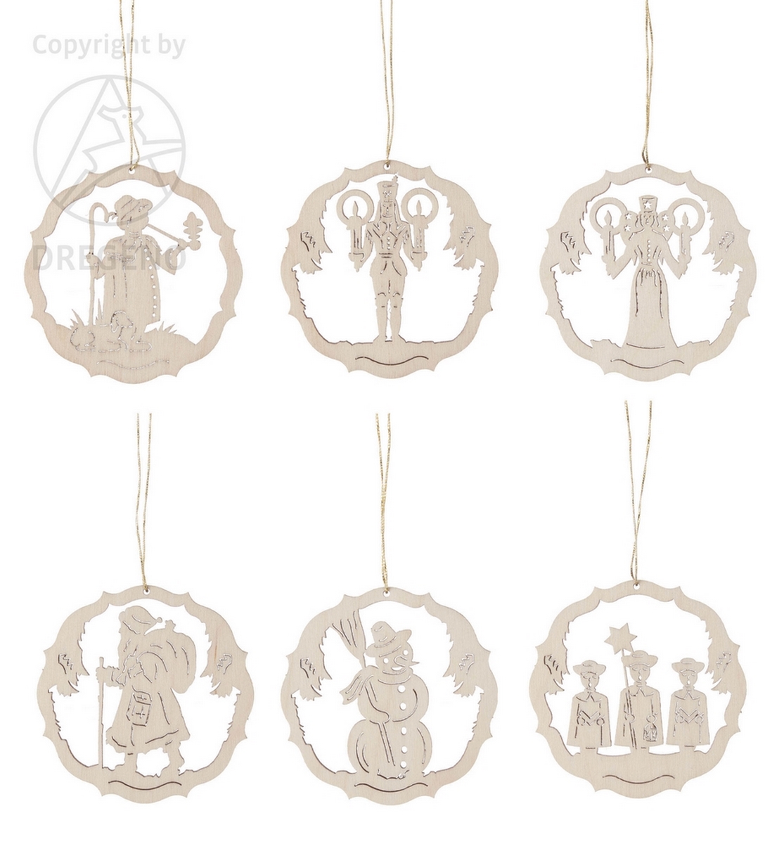 6 verschiedene Motive wie z.B. Weihnachtsmann, Engel + Bergmann, Schneemann oder Kurrende
