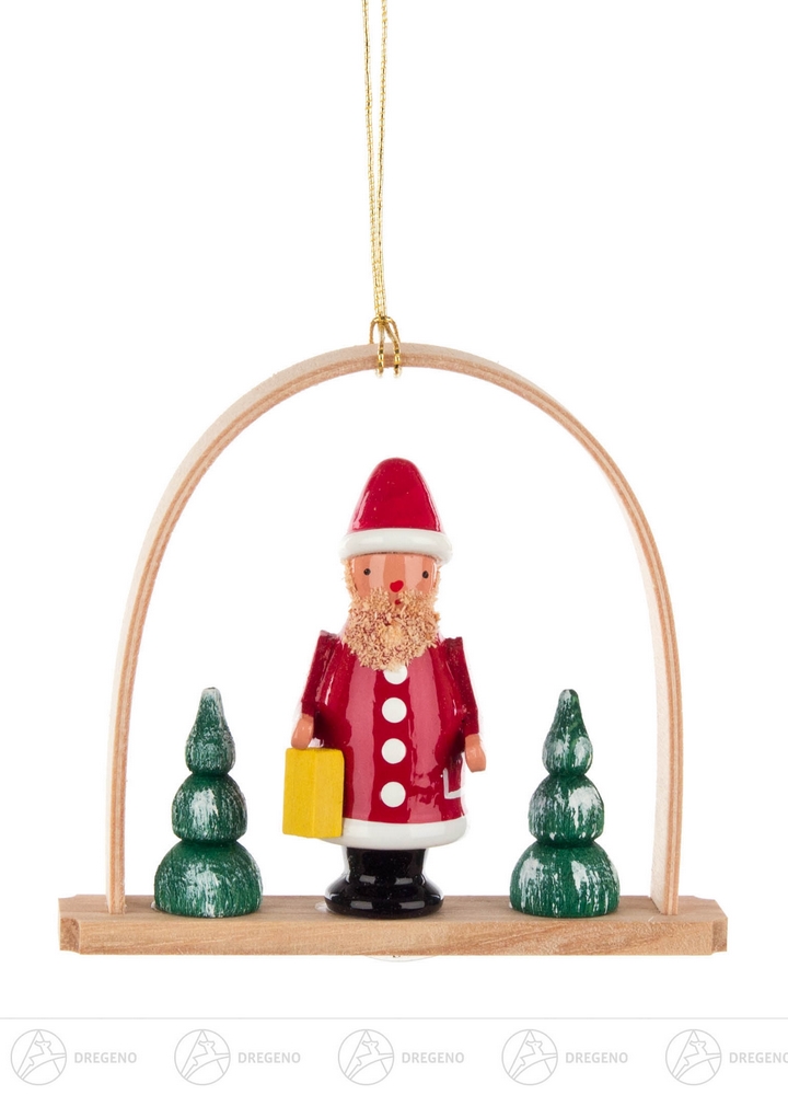 handbemalte erzgebirgische Figur zwischen zwei Bäumchen