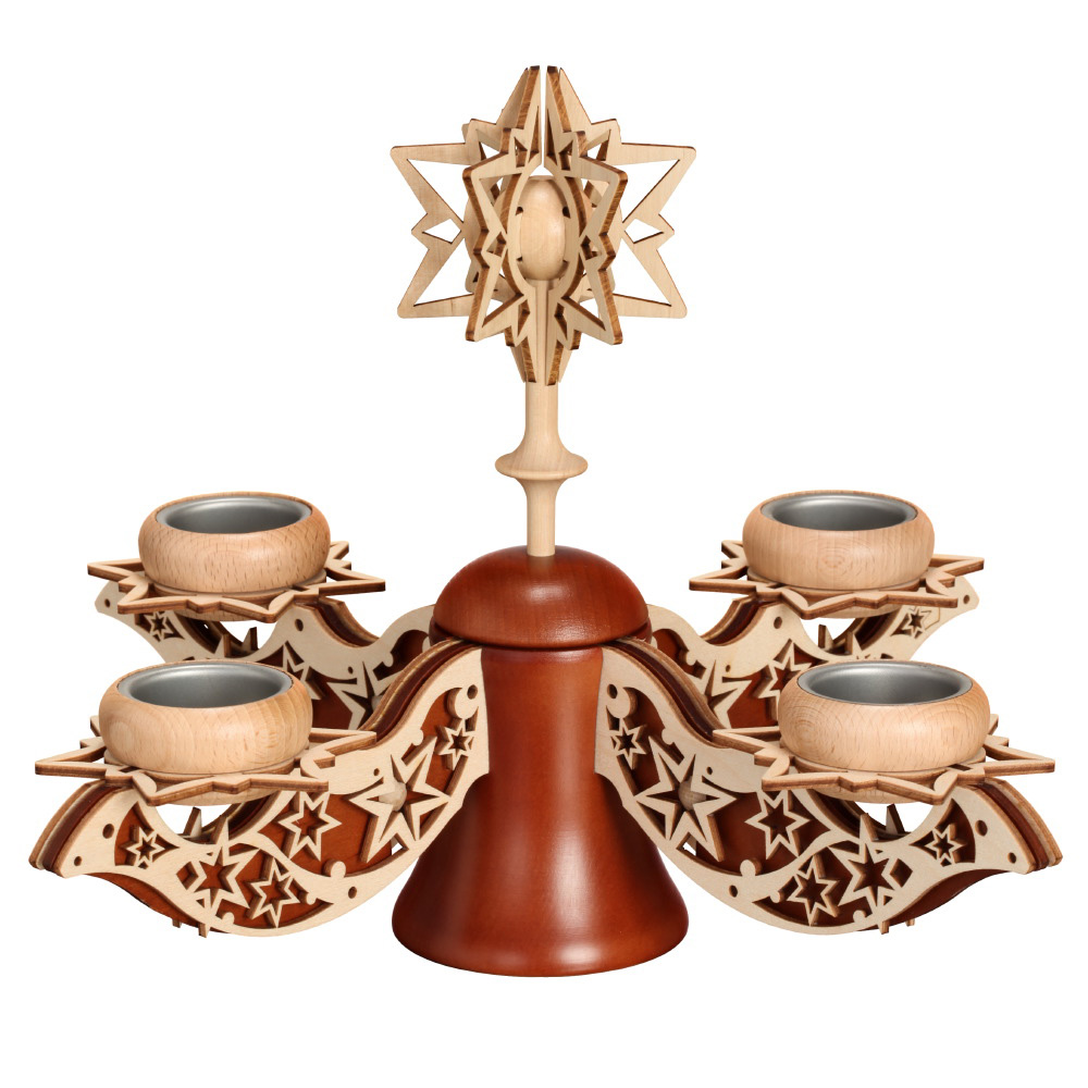 Leuchter mit 4 zusätzlich verzierten Armen (aufgesetztes Birkensperrholz mit Sternen)